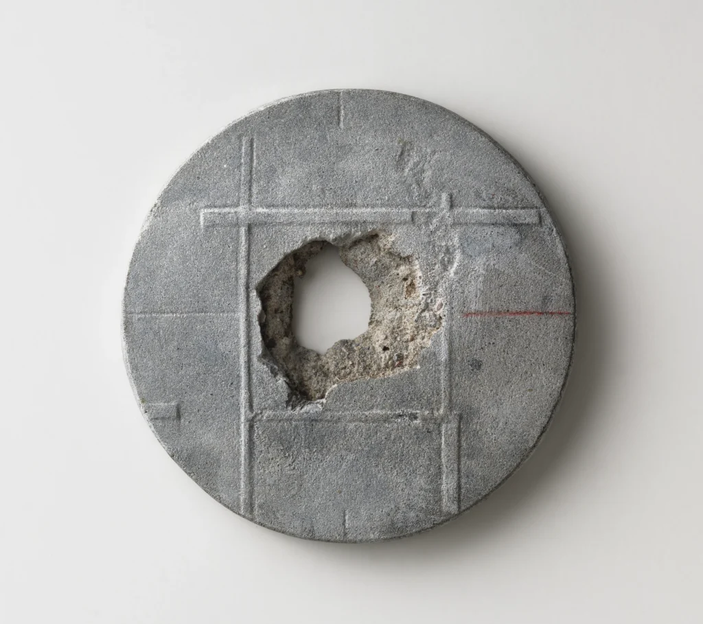 A. Majewska, ADRES 1, 2015 r., wymiary 90x90x15mm, materiał beton