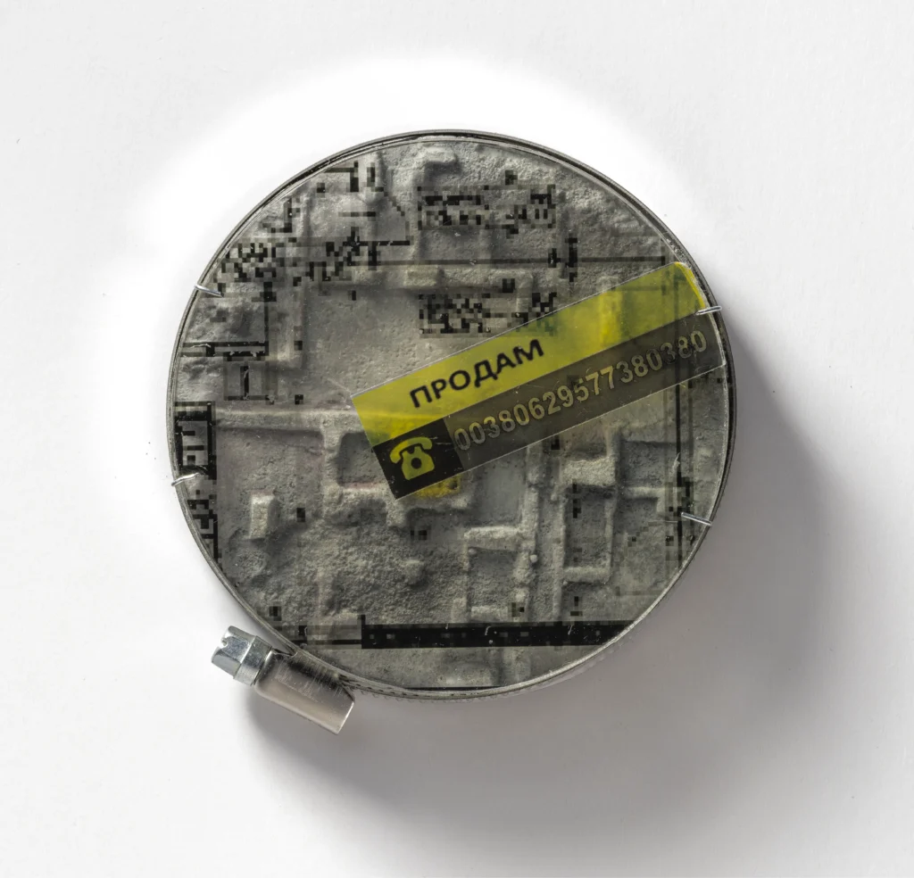 A. Majewska OGŁOSZENIE Z 2024, 2024 r., medal (beton, pleksi z nadrukiem planu mieszkania, opaska zaciskowa)