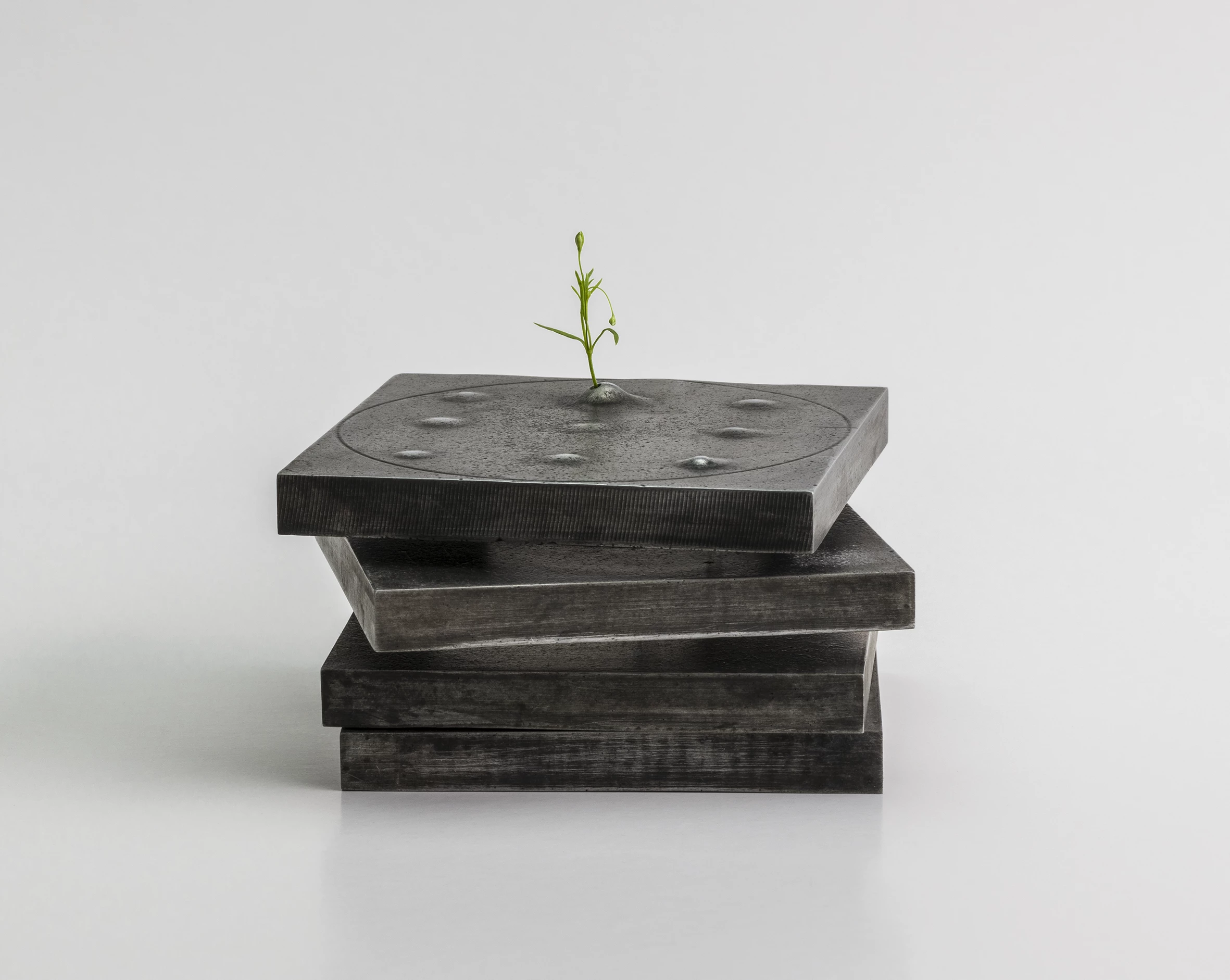 A. Majewska, NATURA, 2021 r., wymiary 90x90x 85 mm, materiał aluminium, roslina